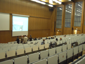Da der Veranstalter ein großes öffentliches Interesse erwartet hatte, wurden, von ihm, passende Räumlichkeiten gemietet, nicht mehr und nicht weniger als die Aula Nr.1, die ausreichenden Platz für mehrere Hundert Personen bietet.